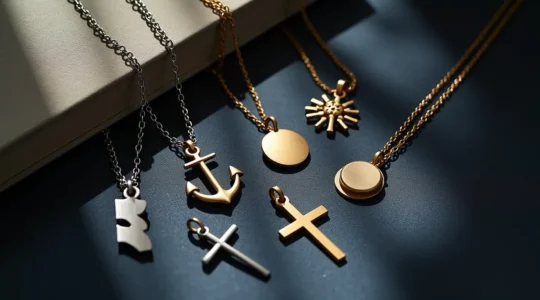 Le pendentif masculin s’est affranchi des codes restrictifs pour devenir une véritable expression de personnalité. Les symboles de protection – main de Fatma, œil grec, Saint-Christophe – transcendent aujourd’hui les frontières culturelles et religieuses pour devenir des talismans universels. La question du port de symboles religieux au travail reste néanmoins encadrée par le règlement intérieur des entreprises, particulièrement dans le secteur privé.