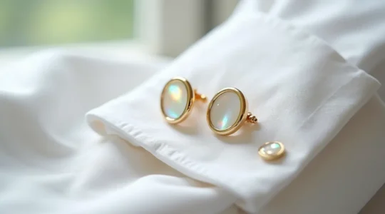 La préservation de la nacre exige quelques précautions simples. Les produits chimiques, notamment les parfums et gels hydroalcooliques, attaquent la surface et provoquent un ternissement irréversible. L’idéal consiste à enfiler les boutons de manchette après s’être parfumé et à les retirer avant tout lavage des mains avec des produits agressifs. Un chiffon microfibre sec suffit au nettoyage quotidien. Si la nacre se décolle de sa monture, un collage avec une colle époxy bi-composant spécifique pour bijoux peut restaurer la fixation, à condition d’agir rapidement avant que la nacre ne se fissure.