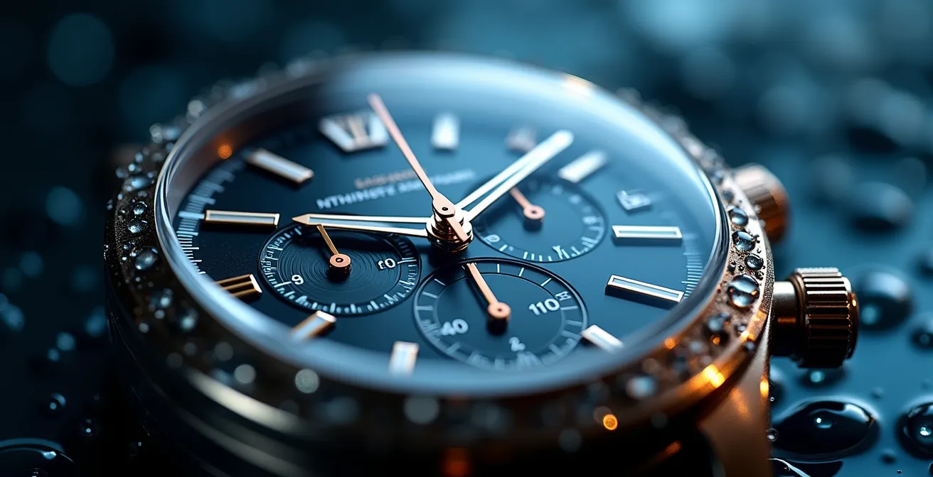La vérité, c’est que l’étanchéité d’un chronographe est une protection passive. Elle n’est valable que lorsque le boîtier est hermétiquement clos. Mais si la véritable clé de la longévité de votre montre n’était pas son indice ATM, mais votre compréhension de sa mécanique ? Le problème n’est pas tant l’eau que le différentiel de pression que vous créez en actionnant un poussoir en immersion. C’est une loi physique simple aux conséquences désastreuses pour le délicat ballet des centaines de pièces qui animent votre montre.